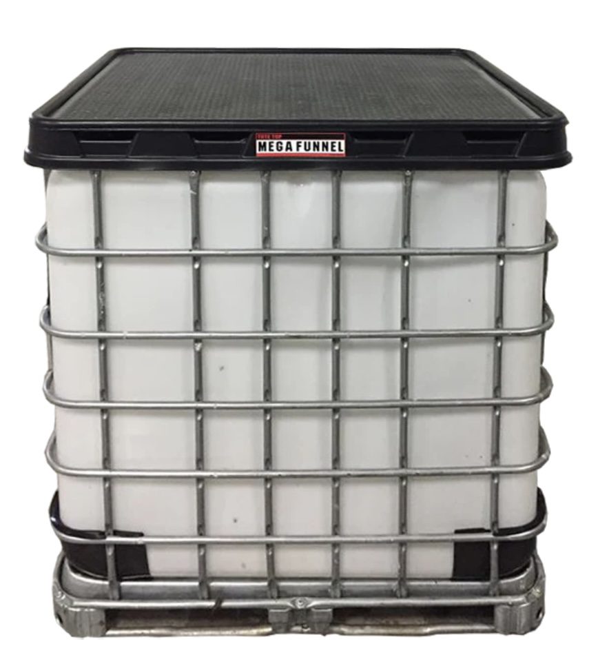 The Tote-Top Mega Funnel is a giant funnel that sits on top of your IBC tote and allows you to quickly & easily pour fluid into your existing tote. It also allows you to leave all your supplies on top such as your pails, drain pan & filters so they can drip dry while the fluid is then funneled back into the tote. Made of HDPE, weighs only 30 lbs and fits 48″ x 40″ totes.