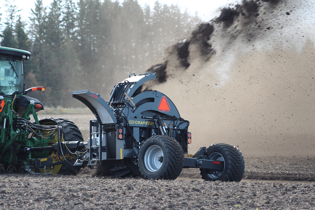 Crary’s Revolutionary Ditcher offers a hardy well built solution for surface water in your field. Leaving a smooth surface as an end result, this machine can throw dirt up to 165 feet in either direction with a 10″ deep cut in each pass. Hydraulic Cross Augers are standard, to help you break up dirt with ease. Hydraulics offer independent elevation control and side tilt, along with a 6.5′ diameter rotor for high volume dirt and rock. This machine can really move dirt to aid with your drainage needs. Contact us today to find a dealer near you!